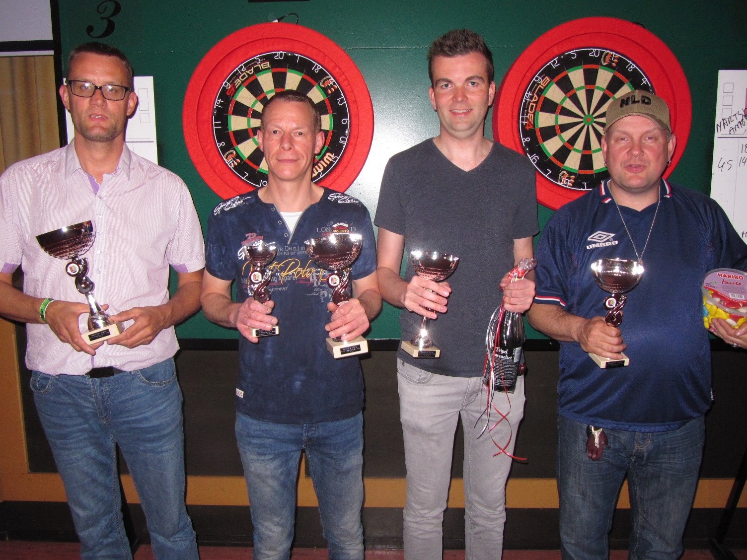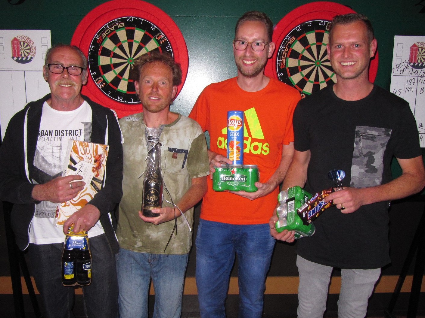 Er was dus ook een verliezerronde. Martijn Vos ging langs de rand van de afgrond, na vier ronden behoorde hij namelijk nog tot de afvallers. Martijn won echter de vijfde ronde én de barrage. Ook Lisa Bruggink ontsnapte via de barrage. In de halve finale stonden Lisa en Martijn tegenover elkaar. Martijn bereikte uiteindelijk zelfs de finale. Samen met Anno Knol bond hij de strijd aan met Jan van Zanten met Huib Gootjes. Hiermee eindigde de come back van Martijn alsnog want de overwinning ging naar Jan met Huib. Hiermee kwam niet alleen een eind aan de avond, maar tevens aan het seizoen van de Poel’s Eye. Het seizoen start pas weer op zaterdag 22 september met de Open Kudelstaart. Hopelijk tot dan. Op de website www.poelseye.nl is nog meer informatie te vinden.