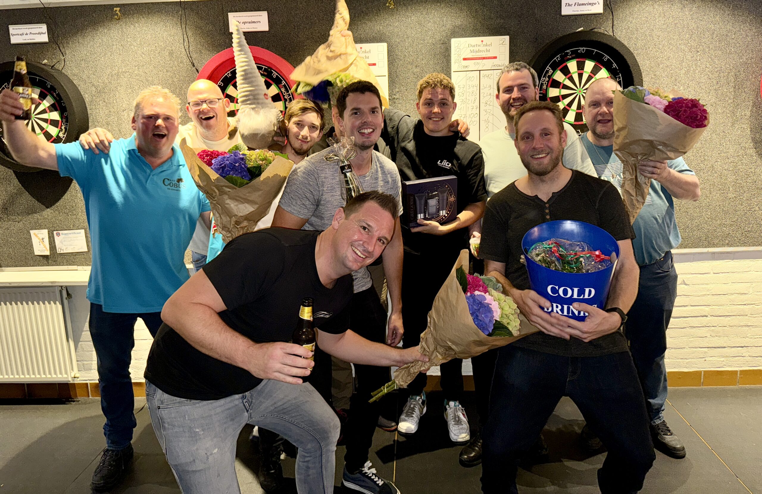 Het regent dit seizoen hoge finishes, op deze avond werd zelfs tweemaal 156 uitgegooid. Martin Bax en Tibor Hogervorst wisten dit hoogstandje te realiseren. Vervolgens liet Tibor het Mystery Out rad stoppen op 114, een door Joris gegooide finish.