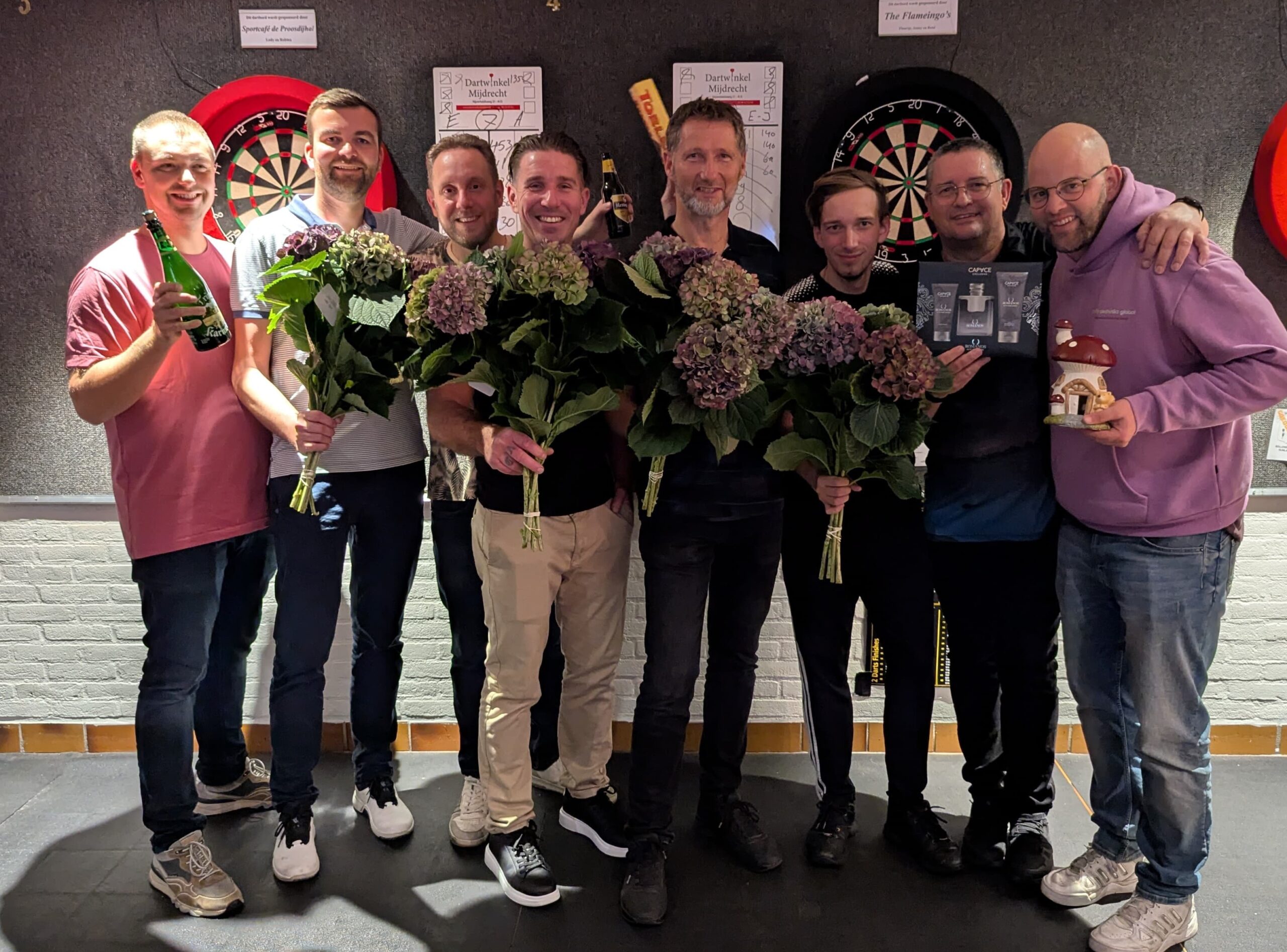 Het regent dit seizoen hoge finishes, op deze avond werd zelfs tweemaal 156 uitgegooid. Martin Bax en Tibor Hogervorst wisten dit hoogstandje te realiseren. Vervolgens liet Tibor het Mystery Out rad stoppen op 114, een door Joris gegooide finish.
